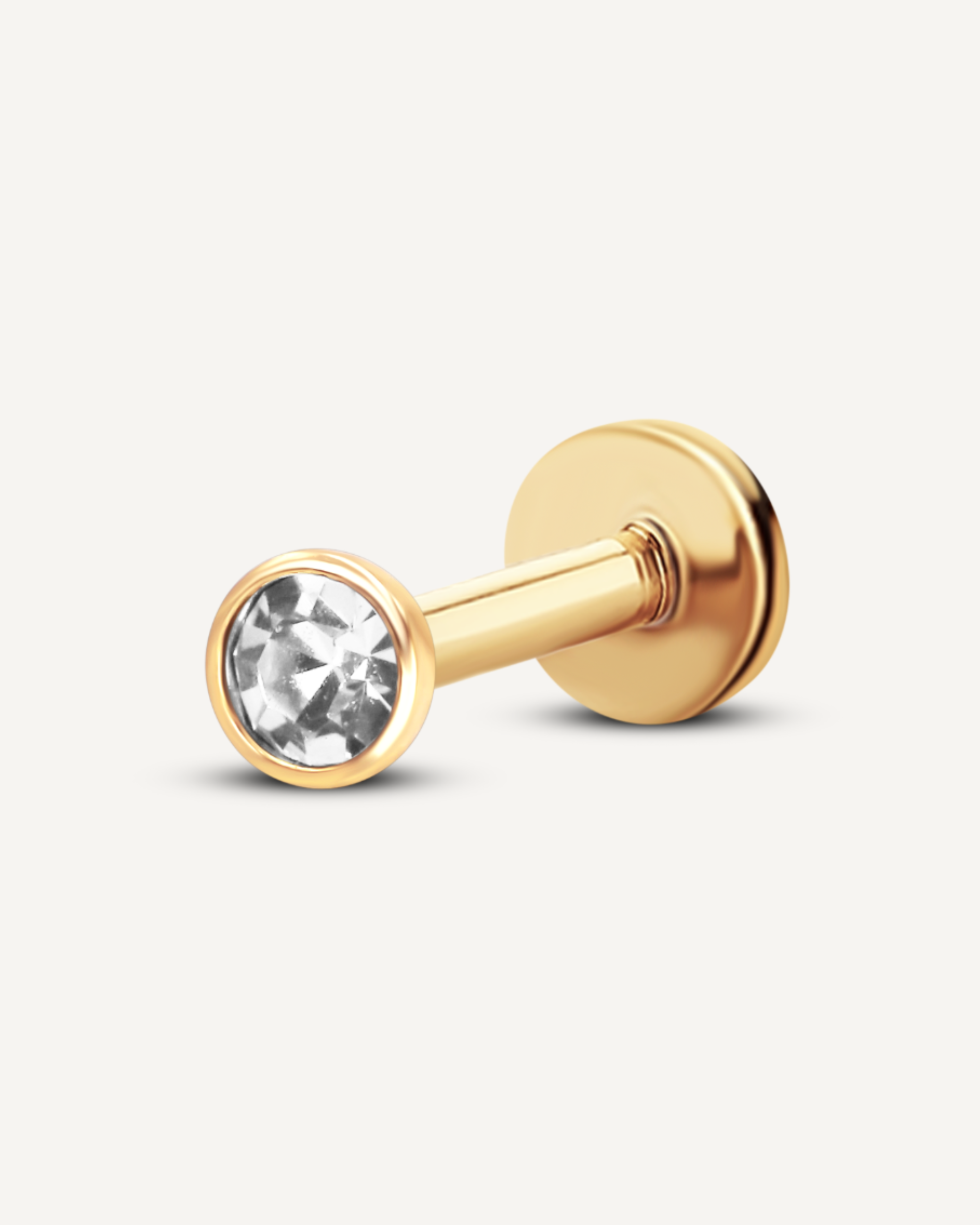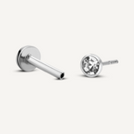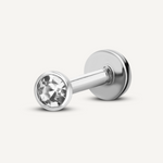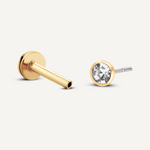 Timeless and minimal, this flatback earring features a single round-cut cubic zirconia encased in a sleek bezel setting for a clean, modern look. Crafted in luminous 18K solid gold or sterling silver - and finished with an 8mm flatback post, it offers secure, all-day comfort—perfect for lobe, cartilage, or tragus piercings.