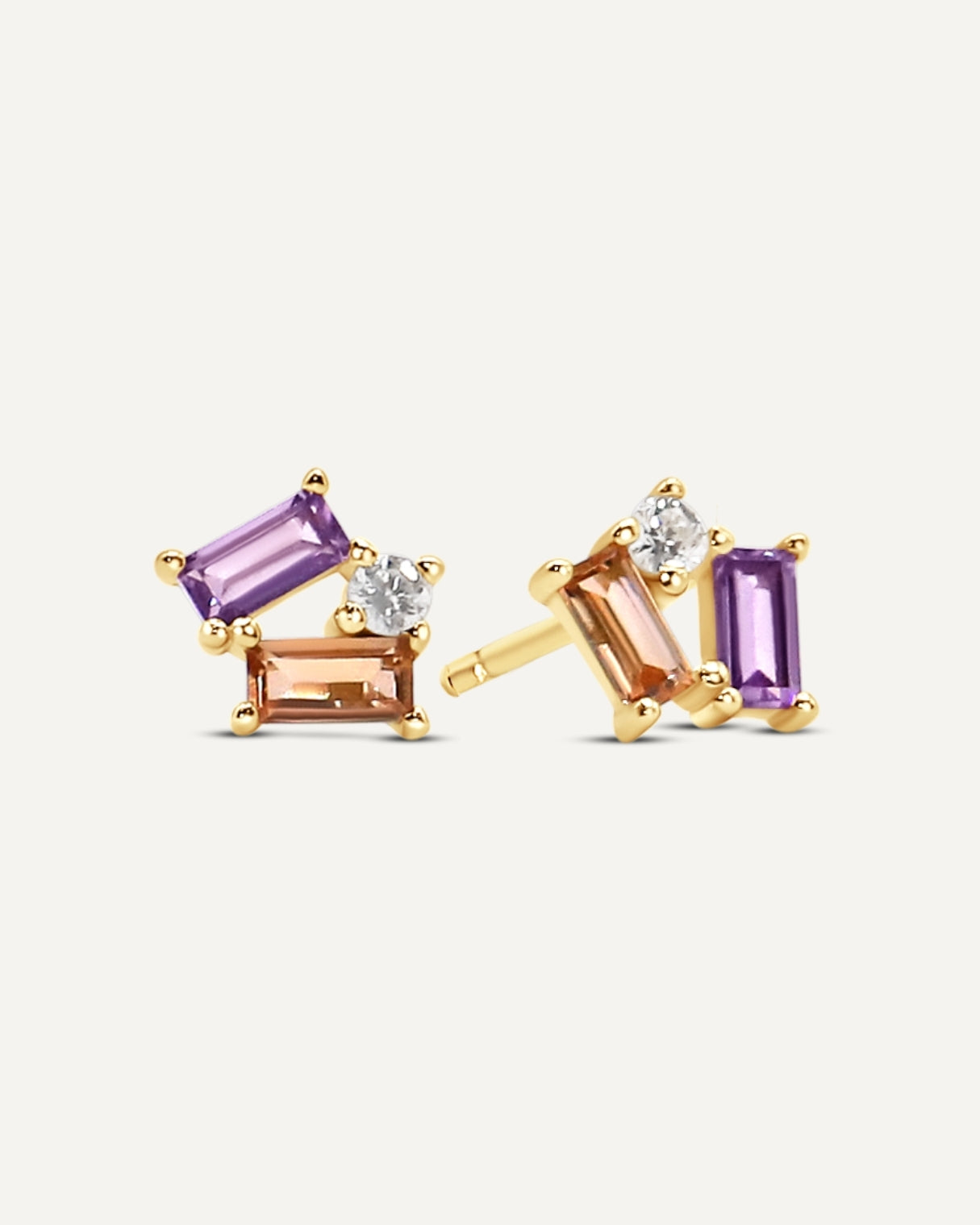 A stunning fusion of color and elegance, the Mosaic Gemstone Cluster Stud features vibrant pink and purple gemstones arranged in a sophisticated cluster design. These playful yet refined studs add a pop of color to any look, making them a perfect balance of bold and timeless. With their versatile design, they can effortlessly elevate both casual and evening outfits, adding a touch of sparkle and charm to every occasion. A must-have piece for those who appreciate unique yet wearable jewelry.