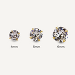 Simple yet necessary. You can't go wrong with a stud. Our Paragon Crystal Studs are the perfect blend of glamour and simplicity with Cubic Zirconia stones set in an 18K Gold Filled stud. Comes in 6mm, 5mm, 4mm, 3mm and 2mm. Made with Nickel free and hypoallergenic materials.