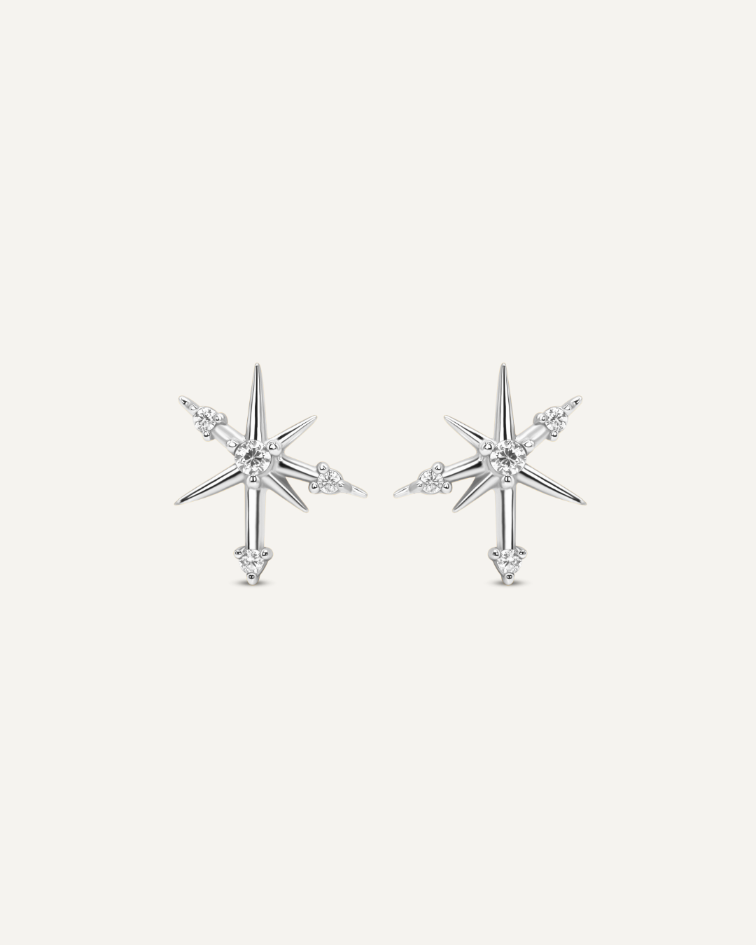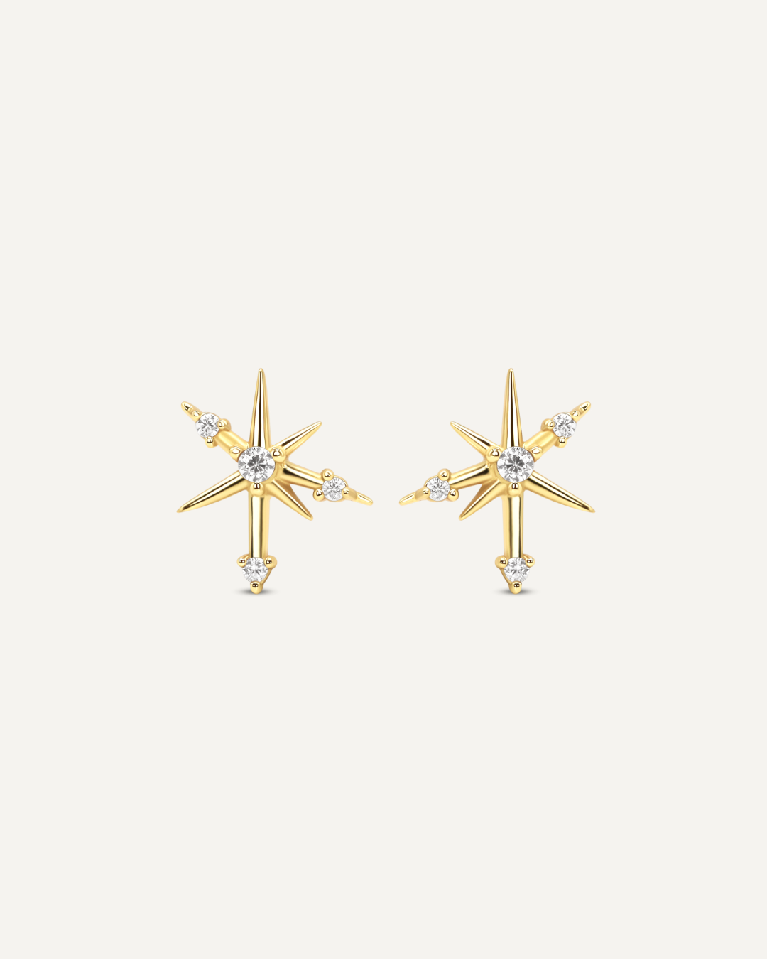 Radiating refined brilliance, these five-point star studs are meticulously detailed with CZ stones that shimmer like a constellation. Their timeless design strikes the perfect balance of elegance and celestial charm, making them a versatile staple for both everyday wear and elevated occasions.