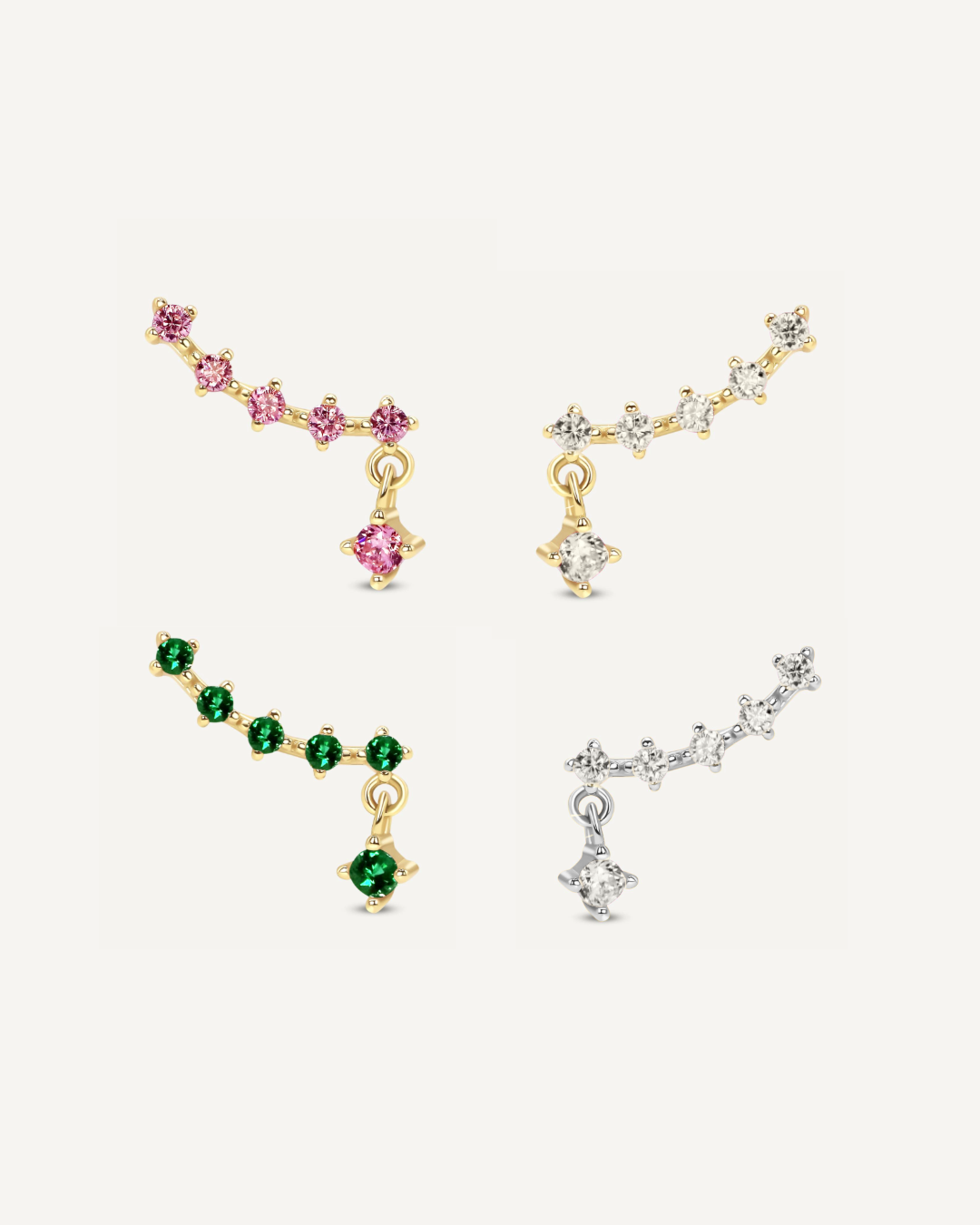 Radiant and eye-catching, the Starburst Drop Crawler Stud is designed to sweep gracefully along the ear with a touch of celestial sparkle. Featuring a cubic zirconia, a vibrant emerald or pink tourmaline, a petite drop stone dangles below the starburst design, catching the light with every move. Sleek yet statement-making, this crawler brings a cosmic twist to everyday elegance.